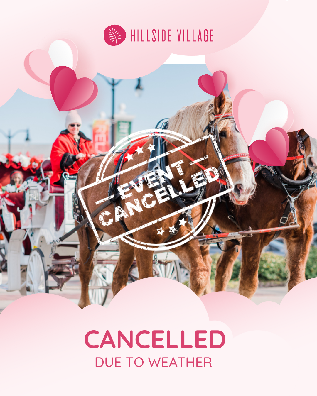 Celebrate Valentine’s Day at Hillside Village — your one-stop destination for romance! CANCELED – COMPLIMENTARY CARRIAGE RIDES | Sat., Feb. 14 1:00pm – 7:00pm